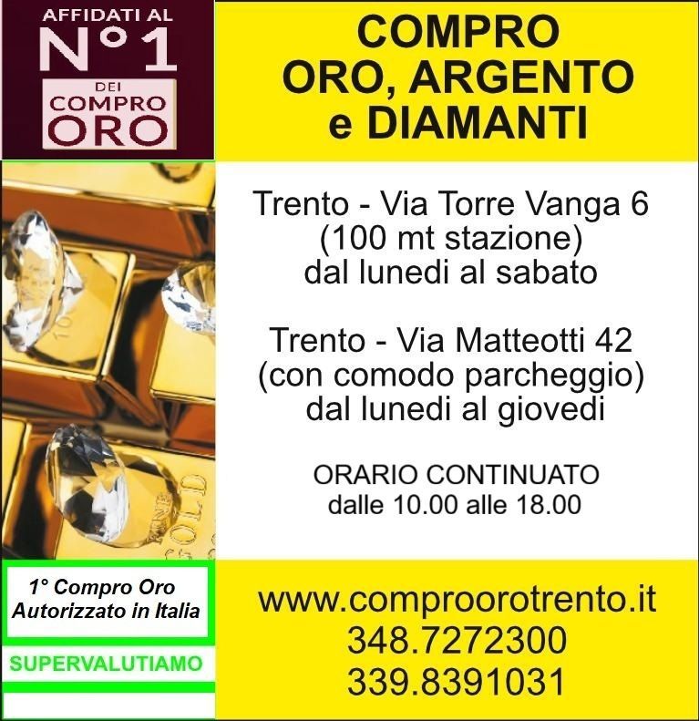 LA MIGLIORE VALUTAZIONE IN TRENTINO Da più di 20 anni lavoriamo nel campo dell’oro, argento , diamanti con serietà, competenza e nella massima trasparenza, garantendo ai nostri clienti un servizio serio, affidabile ed efficiente.